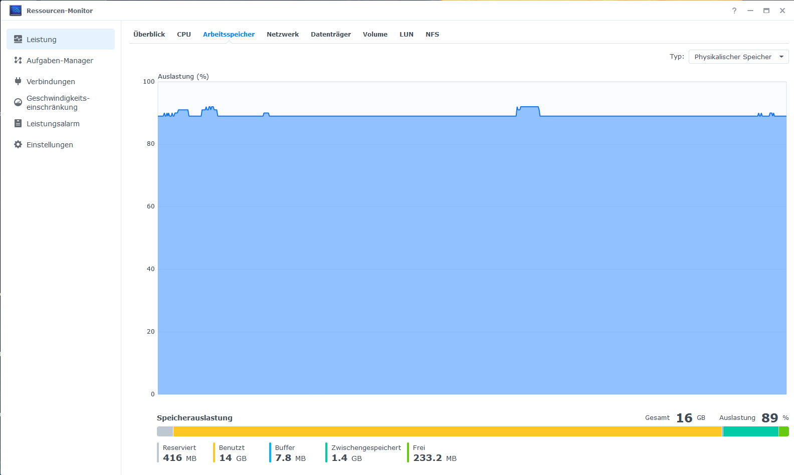 Zur Überprüfung der RAM Auslastung ist der Ressourcen-Monitor im DSM die erste Anlaufstelle.