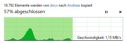 Momentan sieht wie folgt aus (im PC ist eine SSD mit 550 MB/s und in den NAS sind 7200er Toshiba S300 (Film) bzw 7200er 8TB IronWolf (Ordner) Platten verbaut
