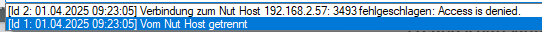 -die IP des PCs in der Systemsteuerung der DS bei erlaubte Clients im USV Server zugelassen ist