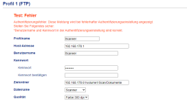 Dein Zielordner stimmt wohl so nicht, aber soweit kommst du ja gar nicht. Darf der Benutzer Scanner FTP überhaupt benutzen?