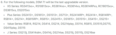 - For the following models, DSM 7.1 will be the last upgradable version.