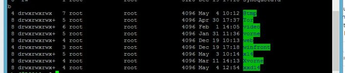 Man möcht es nicht glauben, was alles möglich ist, wenn man den richtigen Schalter kennt! Also so wie es aussieht, sind die Kamraverzeichnisse alle offen wie ein Scheunentor, hab ich aus Verzweiflung für alle User und Gruppen auf der DS218 geöffnet. Auf der Kamera sind die User identisch mit den angelegten Usern auf der DS218. Und trotzdem klappt der Lese-Zugriff von der Kamera aus einfach nicht. Anbei der SCR, bis auf tmp, video, web und winfront sind das alles Verzeichnisse für die Kameras. Wobei mir ein Ordner fehlt, stell ich fest nachdem ich dreimal überprüft hab.