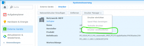 ich habe in den letzten Tagen vergeblich nach einer Lösung hier im Forum und in der DSM-Hilfe gesucht - bisher leider ohne Erfolg. Ich habe noch keine Ahnung, ob das Problem auf der Seite des Druckers oder des NAS liegt.