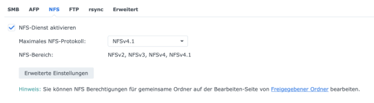3. Ich überprüfe in den DS Einstellungen für NFS, dass auch wirklich NFS v4.1 aktiviert ist: