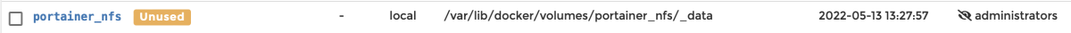 Hinzu kommt, dass unter Portainer->Volumes, mein NFS-Volume der DS als "unused" dargestellt wird: