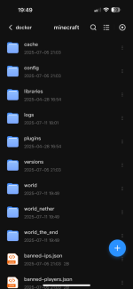 Ich habe mir heute auf meiner DS1522+ mit Docker einen Minecraftserver eingerichtet. Dabei handelt es sich um den IZTG Minecraft Server und da habe ich mir als Spigot Server installiert. Das hat alles soweit gut geklappt und im Dockerverzeichnis habe ich mir für diesen Container auch den Datenordner erstellt. Minecraft verbindet auch soweit und es ist auch spielbar.