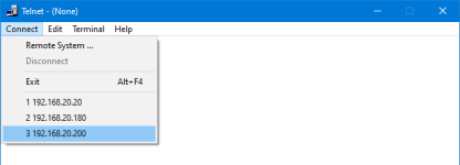 Kann es sein das Du telnet startet ohne den Servernamen anzugeben?