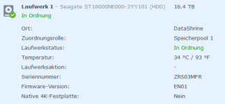 Die genaue Modellbezeichnung des Speichers ohne Hersteller und ohne Revision z.B. Seagate ST16000NM001G - 2KK103