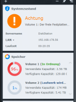 1. mein Vol1 (3TB HB) war vorher zu 75% voll und ich habe letztendlich einen 500GB Ordner auf die neue Vol2 verschoben. Heute ist mein Vol1 nur noch zu 10% belegt. Es könnte daran liegen, daß ich Synology-Drive komplett gestoppt hatte und mit dem hin und her-kopieren/verschieben die Versionierung verloren gegangen ist. Ich hatte teilweise 4 Versionen von einem Ordner hier definiert. Allerdings waren es alles - bis auf den o.g. - Ordner, die auf Vol2 lagen. K.A. ob die Versiones-Kopien auf Vol1 oder Vol2 abgelegt werden. Ist aber schon irgendwie merkwürdig, wenn Vol1 vorher zu 75% und jetzt nur noch zu 10% belegt ist. Im Grunde habe ich auf Vol1 jetzt nur noch die installierten Pakete und die "homes"