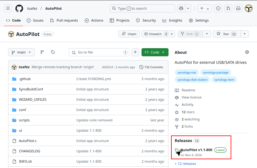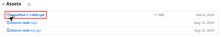 - Wechsle zum AutoPilot GitHub Repository und klicke entweder auf Releases in der rechten Seitenleiste, um dir alle AutoPilot-Versionen anzeigen zu lassen, oder klicke direkt darunter auf die aktuellste AutoPilot-Version. Zum Zeitpunkt der Veröffentlichung dieser Anleitung ist AutoPilot v1.1-800 das aktuellste Release.