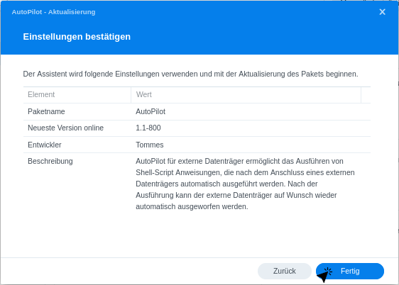 - AutoPilot wurde nun erfolgreich auf deinem Synology NAS installiert.