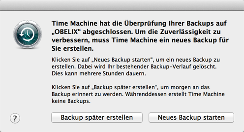 Falls nicht, muss ein neues TimeMachine-Backup angelegt werden.