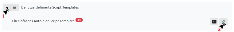 - Klicke auf das Dropdown-Menü Benutzerdefinierte Script Templates (1) und im Anschluss daran auf Link-Symbol (2) hinter dem Script Template Ein einfaches AutoPilot Script Template.