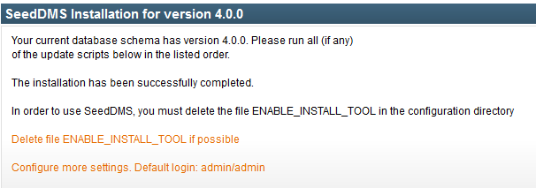 Wenn das soweit geklappt hat, so kann per Browser auf http://diskstation/seeddms43x/www/ gegangen werden und sich mit admin / admin angemeldet werden.