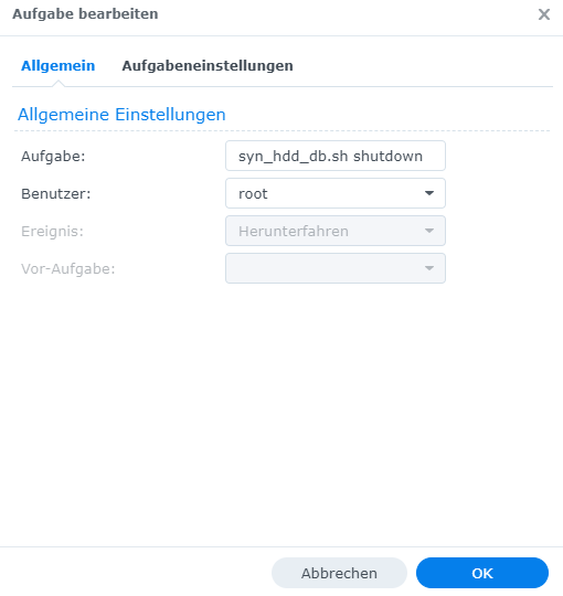 - 11:02, 25. Feb. 2025 Ctrlaltdelete Diskussion Beiträge erstellte die Seite Datei:Syno hdd db.sh Aufgabe Runterfahren01.png
