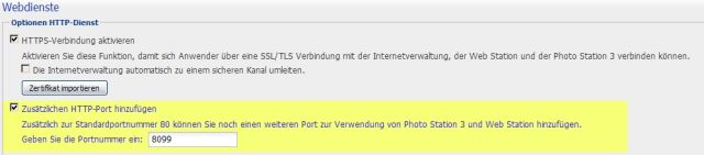 Leider setzt Swisscenter voraus, dass es direkt im Document Root des Webservers läuft. Eine Installation in ein Unterverzeichnis ist so nicht möglich. Glücklicherweise bietet der Apache die Möglichkeit über virtuelle Hosts dies trotzdem zu erreichen. Dazu erstmal im DSM (Diskstation Manager) unter Webdienste einen weiteren Port für den User Apache hinzufügen